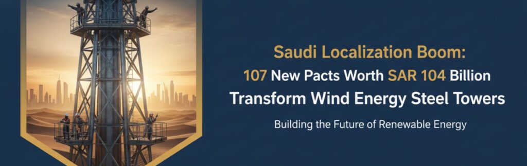 Unlocking Saudi Arabia’s SAR 104B localization wave: 107 new pacts for wind energy steel towers. Discover how local steel manufacturing is powering Vision 2030.